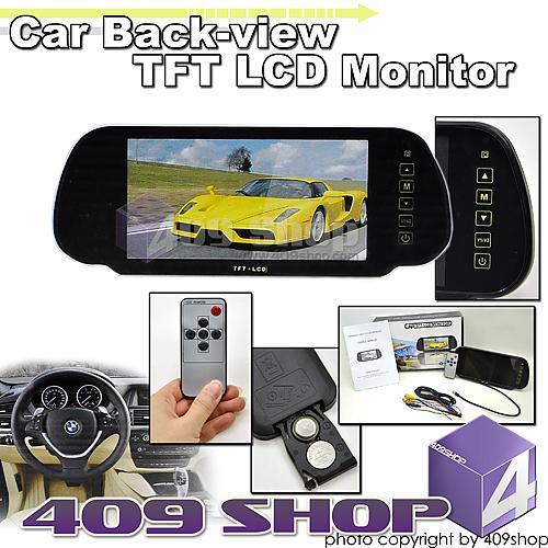 7寸後視鏡的TFT - LCD液晶顯示器 顯示格式:16:9/ 4:3 制式:PAL / NTSC制式自動切換 分辨率:480(寬)*234(高) 菜單可選語言:英文 視頻輸入:2路視頻 v1/v2的切換 工作電壓:DC12V電壓 功率:6W功率 觸摸式菜單按鍵 支持MP5/MP4/MP3/AVI/RM/RMVB等格式文件 紅外 /調頻發射,全功能遙控器 帶倒車自動顯示功能 顏色:黑色