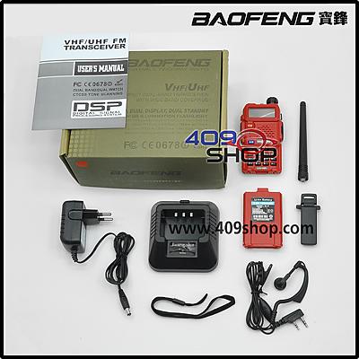 - 1 x UV-5R Red (VHF136-174Mhz UHF 400-480Mhz)