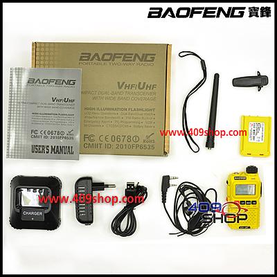 - 1 x BAOFENG UV-3R+Plus Yellow (VHF136-174 / UHF 400-470Mhz Dual Band)