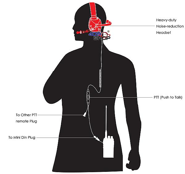 雙PTT設置:您有一個PTT左耳殼,另一個在導線的中間通向雙向無線電;