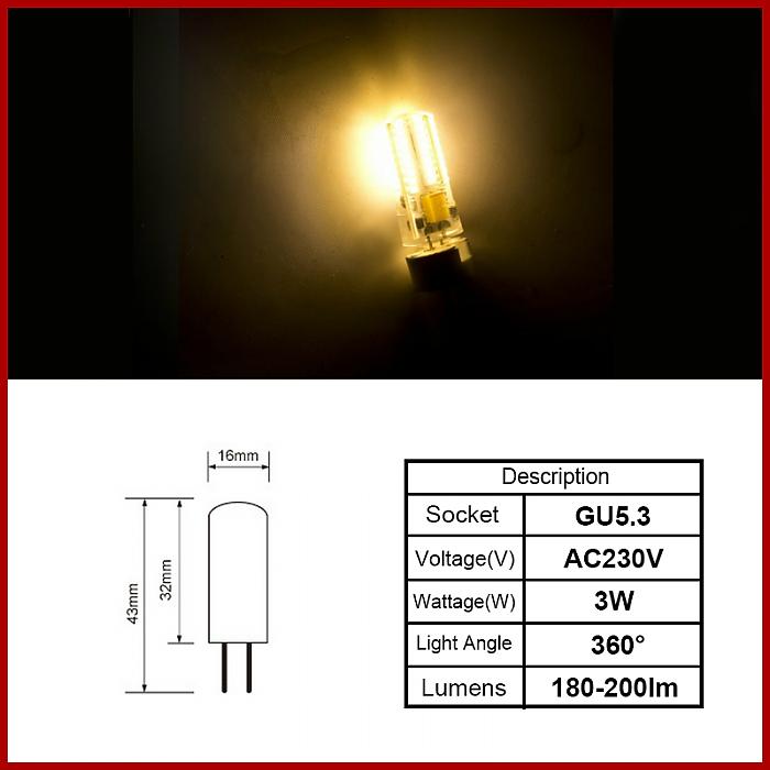 10粒x 36LED 燈泡 GU5.3 3W AC230V 暖色調 白光 2800-3200K