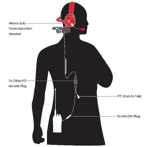 雙PTT設置:您有一個PTT左耳殼,另一個在導線的中間通向雙向無線電;